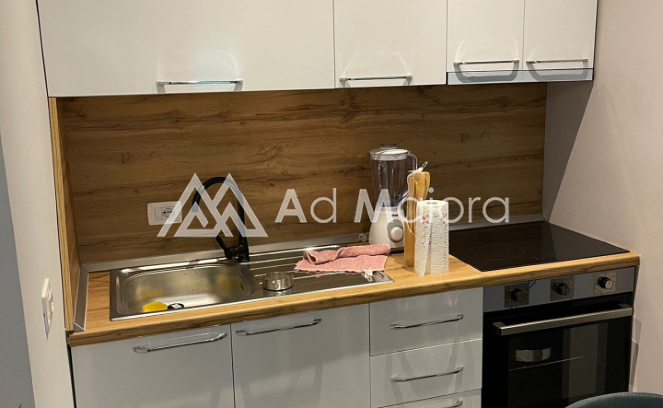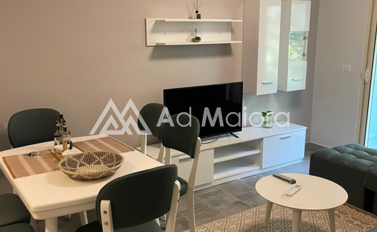 Apartament me siperfaqe 56m2.Organizohet ne 1 dhome gjumi,soggiorno /kuzhine,tualet dhe ballkon.