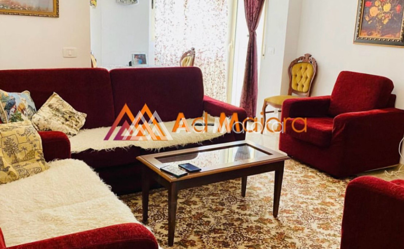 Apartamenti me siperfaqe 90m2 ,organizohet ne 2 dhoma gjumi ,siggiorno,aneks,1 tualet dhe nje ballkon.