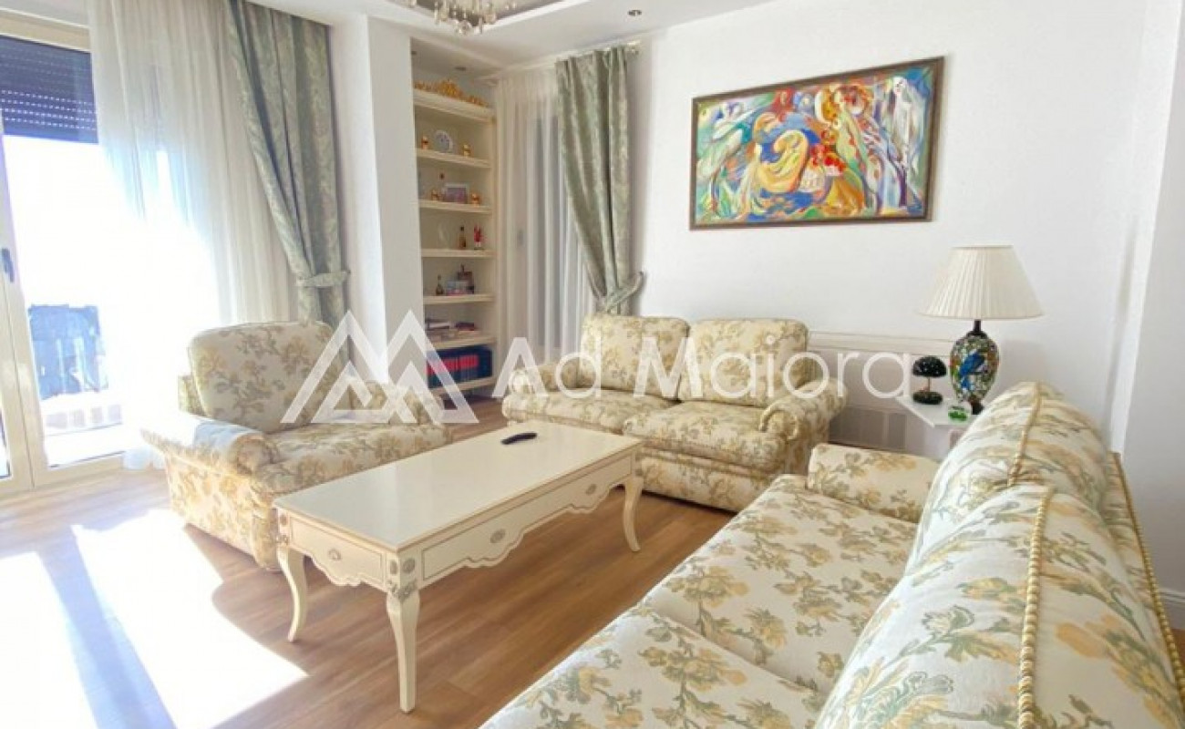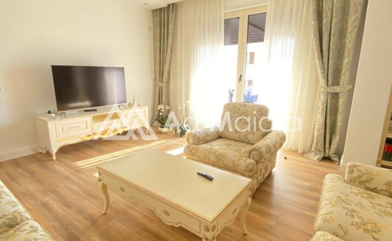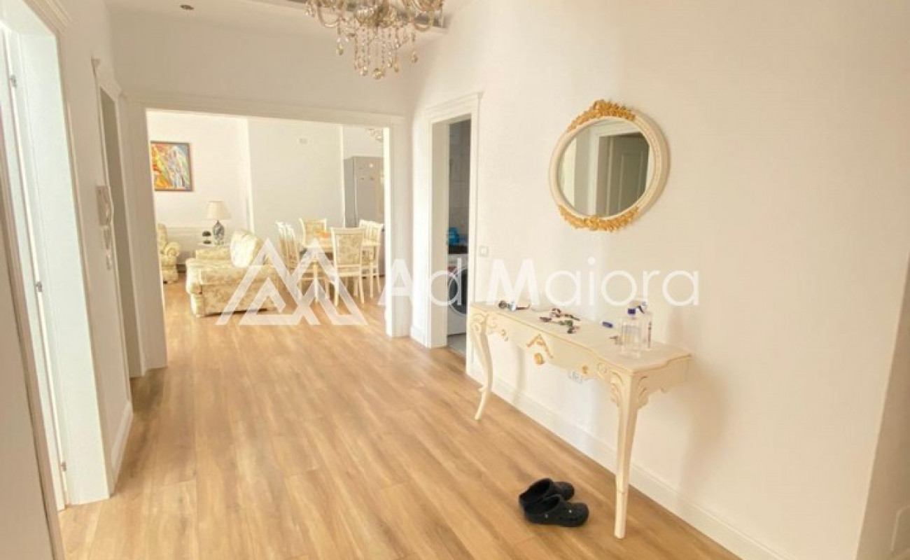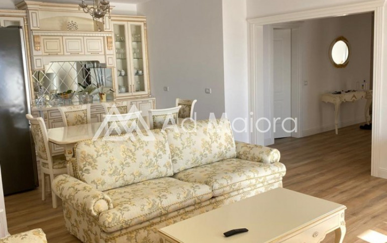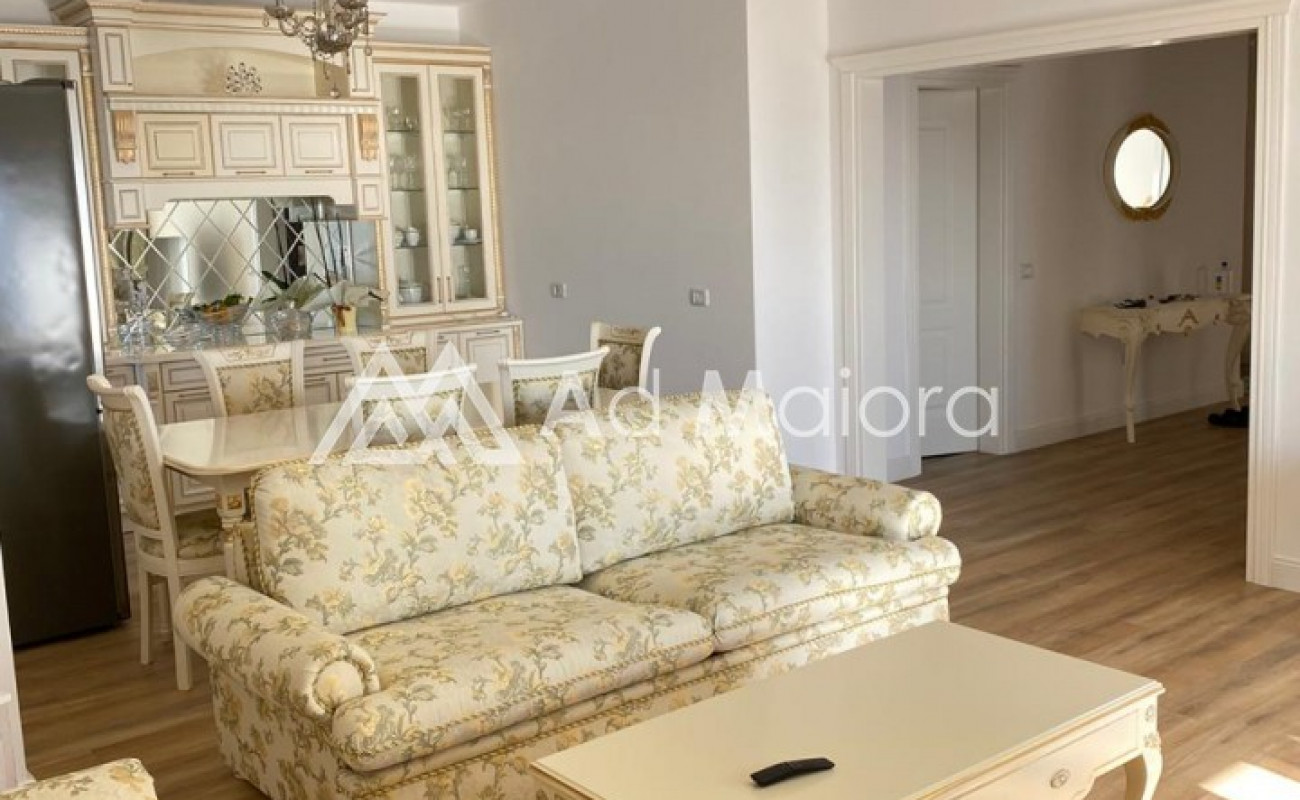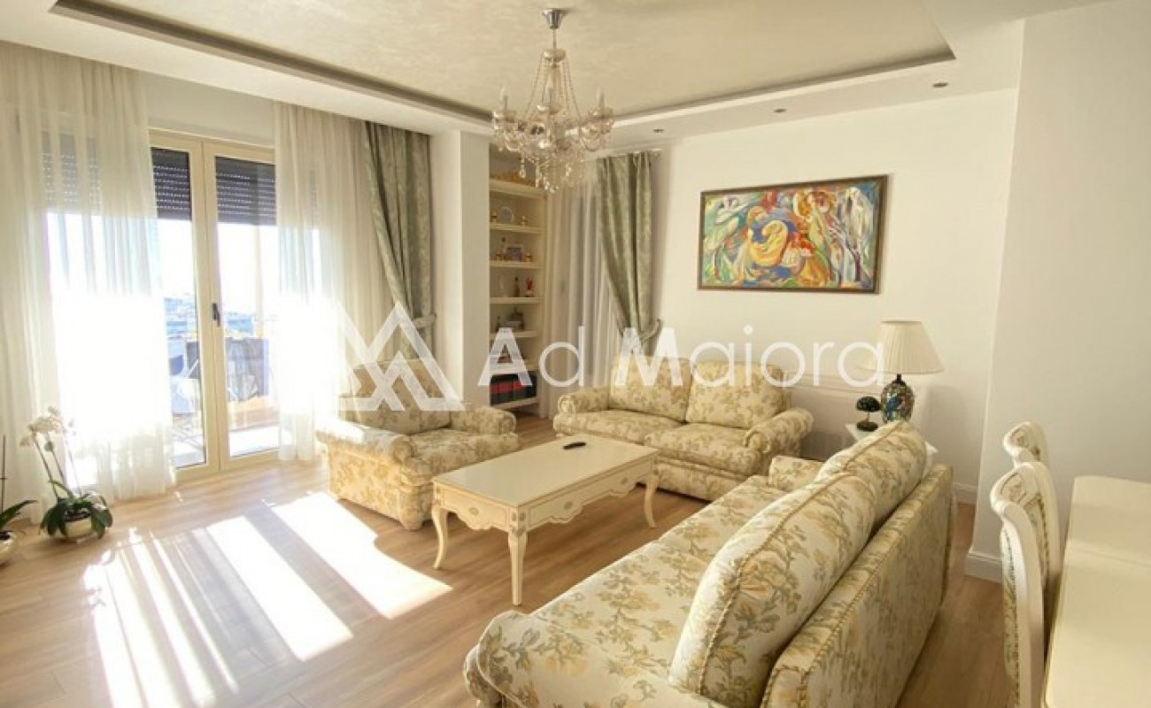Apartamenti eshte me siperfaqe 160m2.Organizohet nga 2 dhoma te medha dhumi.1sogiorno e madhe 2 ballkone .tualet.